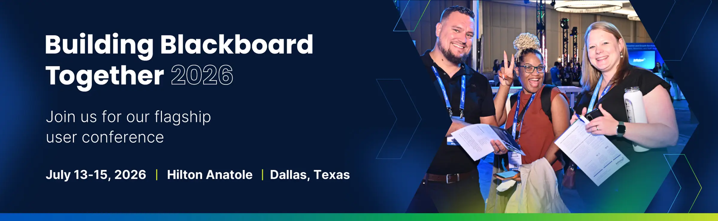 Building Blackboard Together 2026: Join us for our flagship user conference, July 13-15, 2026, Hilton Anatole, Dallas, TXBlackboard customers: Join the Community!